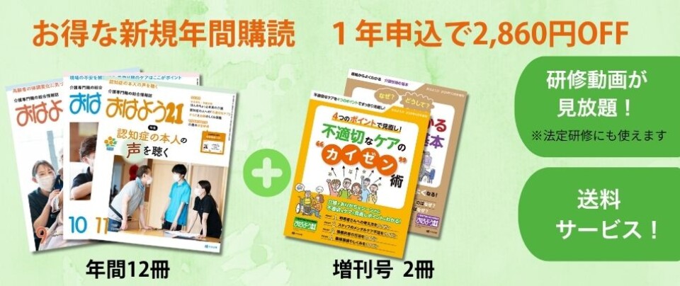介護の月刊誌「おはよう21」を年間契約することで、すべての動画を無料で視聴いただけます!